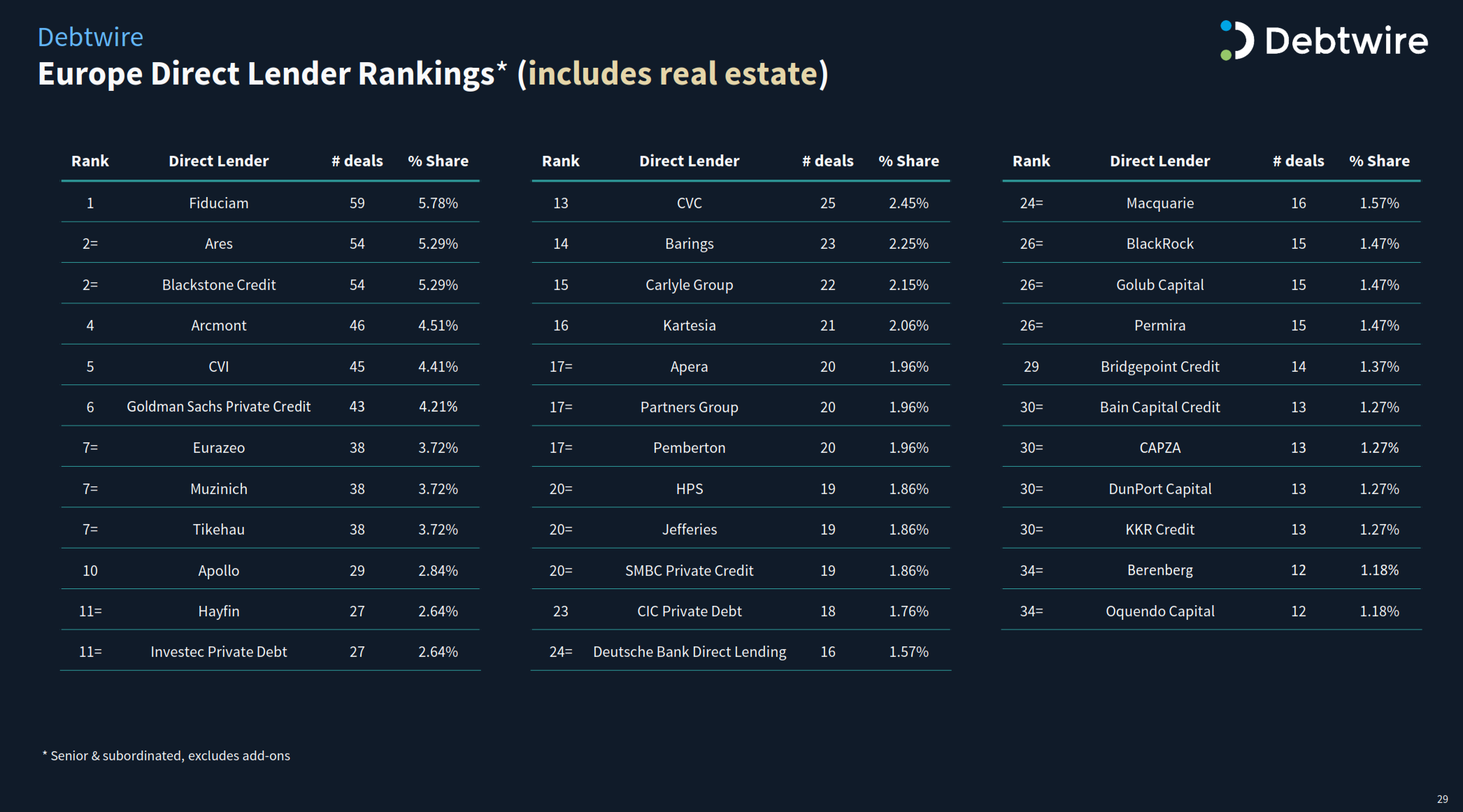 European Direct Lender Rankings 2025